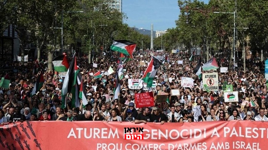עשרות אלפי מפגינים יצאו ביום שבת לרחובות ברצלונה במחאה על "פשעי המשטר הישראלי"