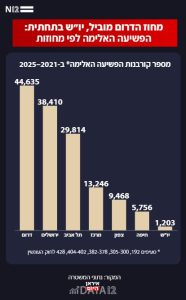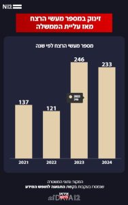 עוד עולה מהנתונים שבשנתיים הראשונות לכהונת הממשלה הנוכחית, נרשם זינוק אדיר במספק קורבנות הרצח ברחבי ישראל. ב-2023 וב-2024 נרצחו בישראל 479 בני אדם – עלייה של 85% לעומת השנתיים שקדמו לעליית הממשלה.