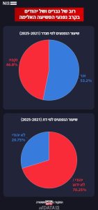 עוד עולה מהניתוח שרוב הקורבנות (53%) הם גברים, וקורבנות יהודים או שדתם לא ידועה מהווים רוב של 70% מסך הקורבנות – דומה לשיעור היהודים באוכלוסיית ישראל. כמו כן, מספר הקורבנות נשאר יציב יחסית ב-5 השנים האחרונות, ובעבירות האלימות שנבדקו העבירה הנפוצה ביותר בפער גדול היא עבירת האיומים.
