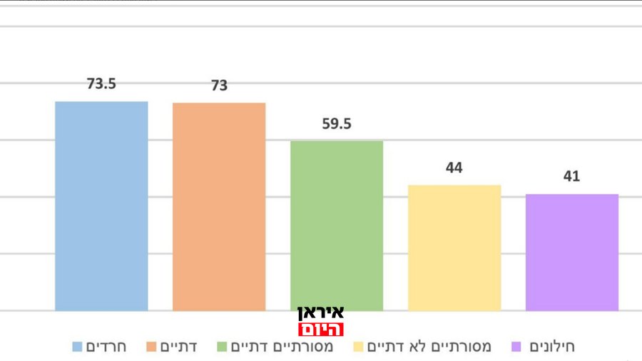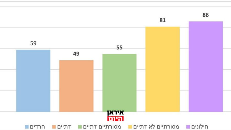 כפי שמראה התרשים שלהלן, רק בקרב קבוצת הדתיים שיעור מי שמעריכים את המצב הרוח הלאומי כדי או מאוד ירוד הוא כמחצית. בכל שאר הקבוצות מדובר ברוב שזו דעתם.