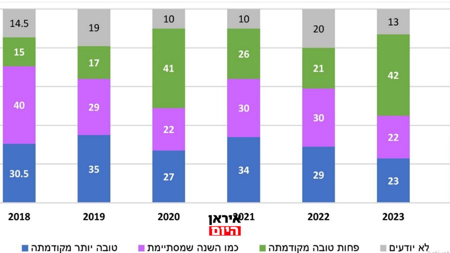 הנתונים מורים על ירידה משמעותית בכלל המדגם בשיעור מי שצופים שהשנה הבאה תהיה גרועה מזו המסתיימת – מ-42% בשנה שעברה (השיעור הגבוה ביותר בכל האפשרויות שהוצגו אז למרואיינים) ל-24.5% בלבד השנה. במקביל, מצאנו עלייה בשיעורי מי שמעריכים כי השנה החדשה תהיה טובה יותר (מ-23% ל-33%) ומי שצופים דמיון בין השנה המסתיימת לשנה הבאה (מ-22% ל-30%).